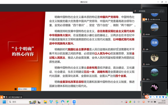 党总支组织开展了学习贯彻习近平新时代中国特色社会主义思想主题教育第二次集中学习活动。本次学习采用联学共学、线上线下的方式进行,由计算机教学党支部刘红敏老师领学,全体党员参加了学习。