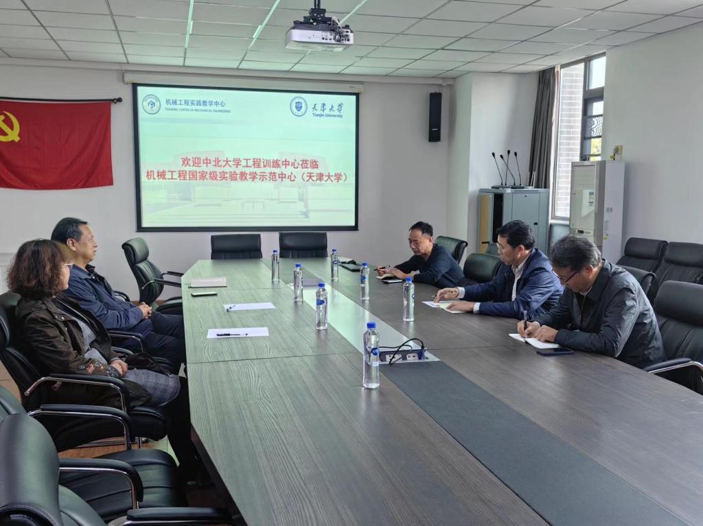 教师的到来表示热烈欢迎,共同参观了天津大学工训中心。在随后的座谈交流中,天津大学机械工程实践中心主任倪雁冰教授对天津大学在国家级工程训练实验教学示范中心建设、工程训练教学的改革、“项目式教学”的模式、工训教学中的课程思政等进行了详细介绍,双方在工程训练创新模式改革、教学管理、大类平台建设等工作进入深入探讨。