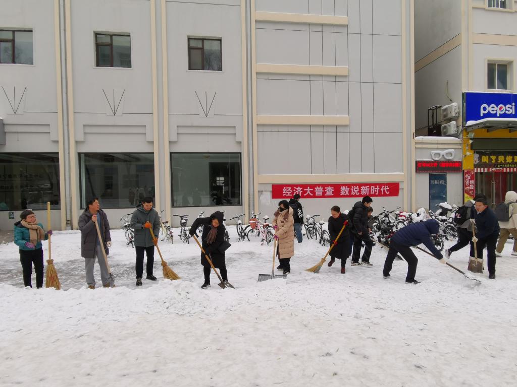 学院各工会会员纷纷响应号召,不畏严寒,扛起铁锹、拿起推雪板,两个地点教师同时开始投入到这场清扫积雪的活动中,大家团结协作,井然有序,挥舞着铁锹和扫帚,铲的铲,扫的扫,场面热火朝天。铁锹与地面的摩擦声奏出了一曲“清冰除雪进行曲”,虽然每位会员两颊两手冻得通红,但是仍不亦乐乎,忙碌的身影构成了一道靓丽的风景线。经过一个多小时的“奋战”,为师生的出行铲开了一条洋溢着温情的通畅道路,传递了一份温暖和正能量。
