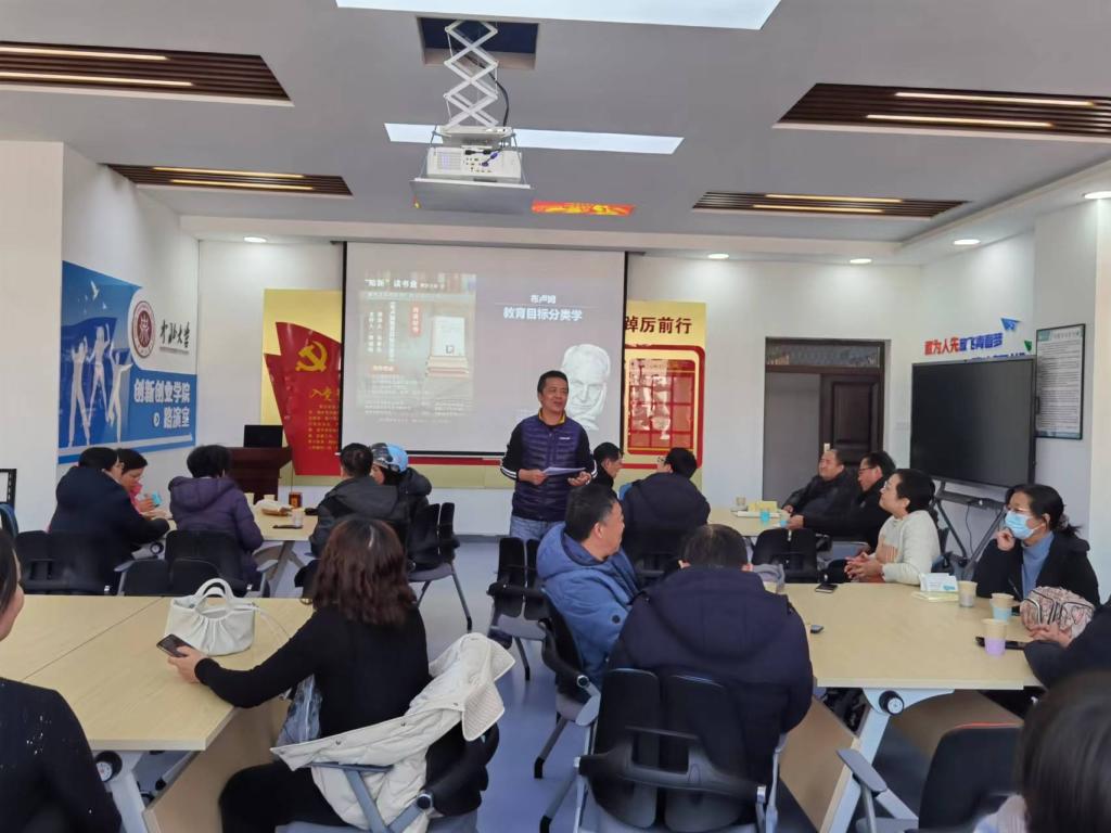 马春生老师是本期读书沙龙的领读人,他从认知过程维度、知识维度和分类学表三方面分享了布卢姆《教育分类学》的教育理念。他表示布卢姆教育分类学是教育界著名的分类法之一,他为教育工作者提供一种分类框架,可以帮助教师更加具体的了解学生的能力要求,为教师提供更好地课程设计方案和教学方法,同时也有利于测量学生学习成果。