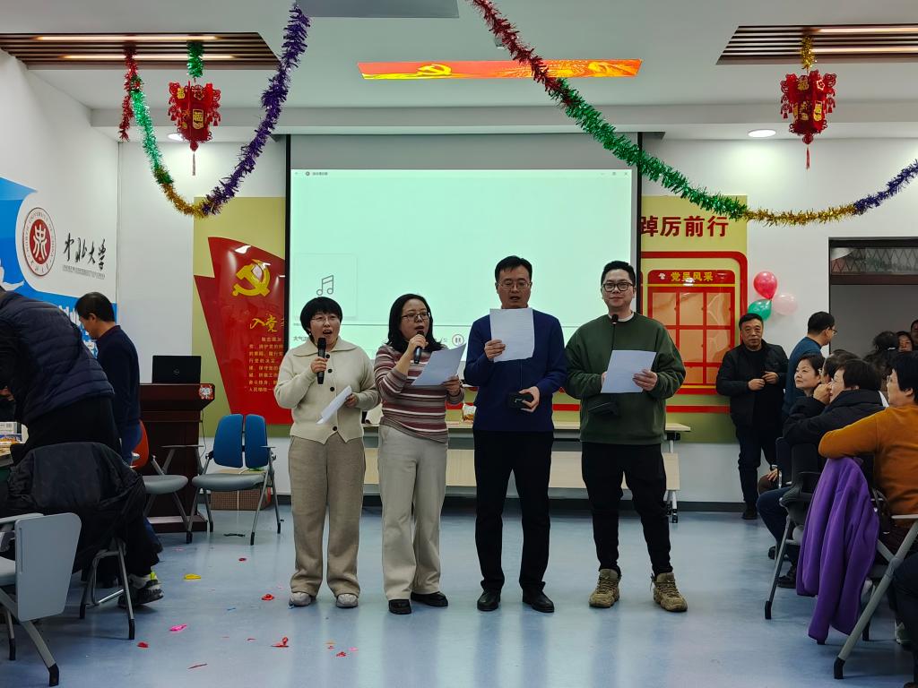 在学院4楼举办以“新学院 新气象 新憧憬 新征程”为主题的2024年新年联欢会活动。学院党总书记高春强和院长王黎明出席,学院杜林玲和董振老师担任主持,学院百余名教职工及退休教师欢聚一堂,共庆元旦。