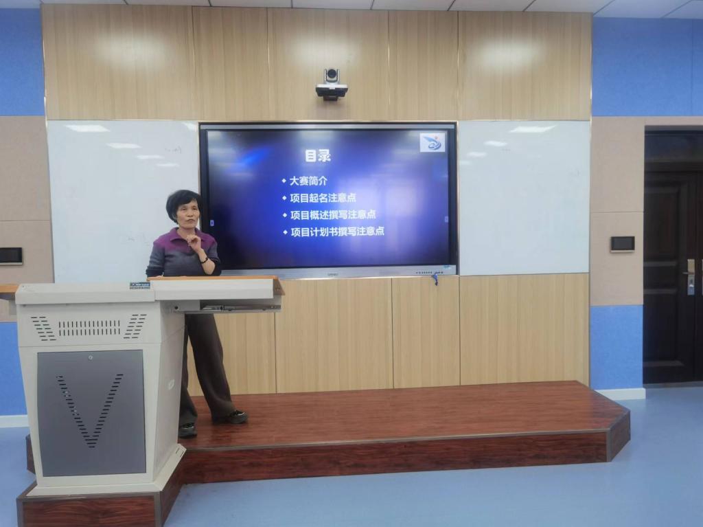 李老师主要从中国国际大学生创新大赛发展历程、大赛项目命名注意点、大赛项目PPT编辑要点、大赛项目计划书撰写要点等方面阐述了学生参加竞赛活动的重要性。李老师强调,中国国际大学生创新大赛旨在深化高等教育综合改革,激发大学生的创造力,提升大学生团队合作能力和社会实践能力,培养和提升大学生的自学能力和科研创新能力。指导教师要鼓励学生积极参与,有助于进一步促进学生专业能力培养和提升教学质量。