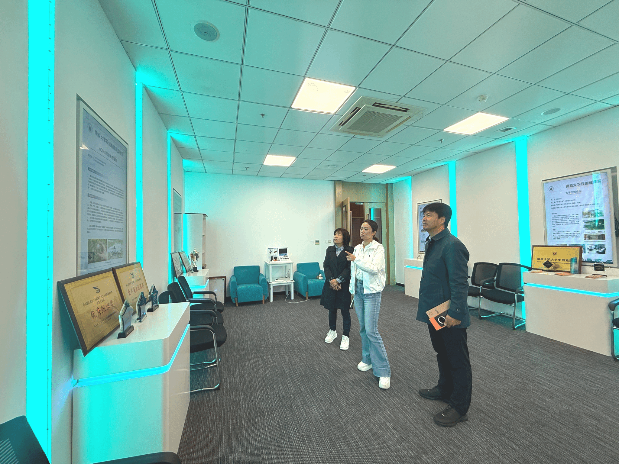 的历史发展、组织架构以及中国国际大学生创新大赛参赛经验等内容。在南京理工大学,创新创业教育学院副院长赵茜对“六位一体”双创人才培养体系进行了详细介绍,并就中国国际大学生创新大赛项目遴选、团队建设以及创新创业教育相关奖励政策等方面进行了深度交流。调研团队还实地考察走访了南京大学“科创之星”大学生众创空间和南京理工大学大学生双创活动中心,与一线指导教师、学生团队代表深入交流,详细了解创新创业教育开展情况和项目孵化成效。