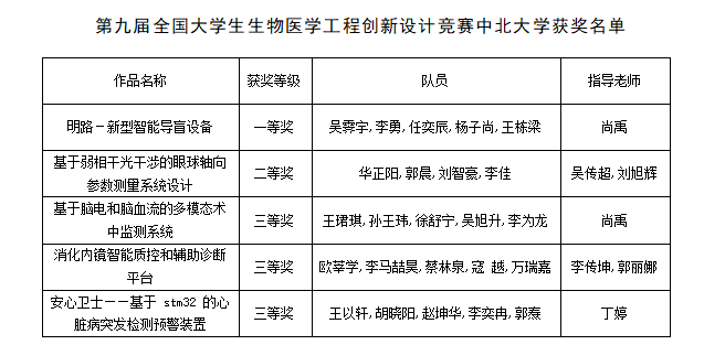 喜讯!校学子在第九届全国大学生生物医学工程创新设计竞赛中获佳绩