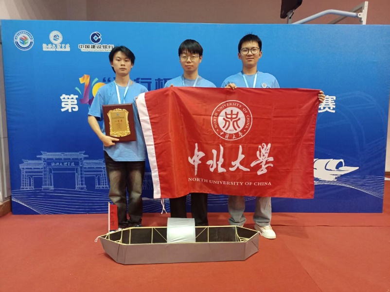 学子曾学兵、郭旭江和刘子懿三位同学现场设计制作的作品《汾水乌篷》,凭借优异的滑行速度、抗撞击能力和运载能力成功完成了三级加载测试,斩获国赛总决赛一等奖(全国第13名)。
