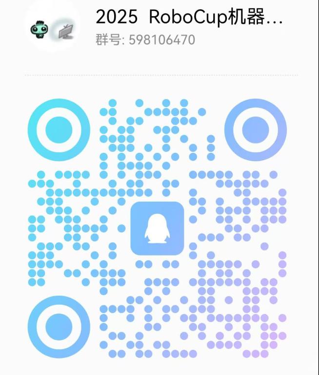 2.报名方式:请填写下方附件中团队信息统计表格以“中国机器人大赛+队长姓名”命名,发送至邮箱[email protected]中,请勿重复发送,截止至3月15日,信息发送完成后请加入“2025中国机器人大赛暨RoboCup机器人世界杯中国赛 (RoboCup赛区)”校赛通知群(QQ群):598106470。